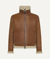 Fliegerjacke in Wildleder mit hohem Lammfellkragen