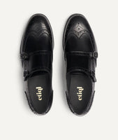 Die Monk Strap Schuhe in Schwarz werden von ETIQLs Kunsthandwerkern in Italien handgefertigt und vereinen feminine Eleganz mit zeitloser Eleganz. Gefertigt aus glattem, schwarzem italienischem Kalbsleder und mit Brogue-Flügelspitzen-Perforationen versehen, verfügt dieses edle Paar über silberfarbene Schnallen, ein glattes Kalbslederfutter und eine nach der Blake-Methode gefertigte Ledersohle – für Anmut, Struktur und zeitlosen Stil für jeden Anlass.