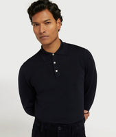 Long Sleeve Polo in Extrafine Merino Wool