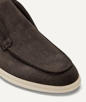 Der Suede Slipper, der noch immer in Handarbeit im italienischen Montegranaro in Elisas Manufaktur gefertigt wird, erinnert dank seines klassischen Designs aus marineblauem Wildleder an einen exklusiven Bootsschuh. Dementsprechend weckt der hochwertige Schuh ein Gefühl von Freiheit und Lebensfreude. Darüber hinaus sorgt seine rutschfeste Gummisohle für noch mehr Komfort beim Tragen im Alltag, aber auch in der Freizeit.