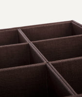 Die ersten Aufbewahrungsboxen aus Leinen waren bereits im alten Ägypten aufgrund ihrer hohen Haltbarkeit und Reißfestigkeit im zivilen wie auch im militärischen Bereich gefragt. Diese Box aus gewachstem Leinen wird in der italienischen Region Padua hergestellt und besticht durch ihre Qualität und Optik.