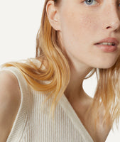 Our precious linen blend yarns, made from 65% linen and 35% cotton, are spun by a certified mill in Biella, Italy. The characteristics of a natural fiber such as linen, capable of absorbing moisture, combined with the hypoallergenic properties, breathability and softness of organic cotton make the finished piece fresh and versatile. Grown in France, our linen is certified European Flax Standard and, thanks to its mono-fiber composition, it's even more recyclable. It easily absorbs and releases moisture so it feels dry and cool and it's also resistant to time and wear and tear.