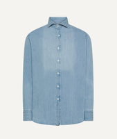 Einst ein unverzichtbares Arbeitskleidungsstück, ist das Jeanshemd zu einer zeitlosen Freizeitikone geworden. Das Light Denim Shirt wird in Italien aus weichem Baumwolldenim gefertigt und bietet eine entspannte Silhouette mit Knopfleiste vorne in einer vielseitigen hellen Waschung.